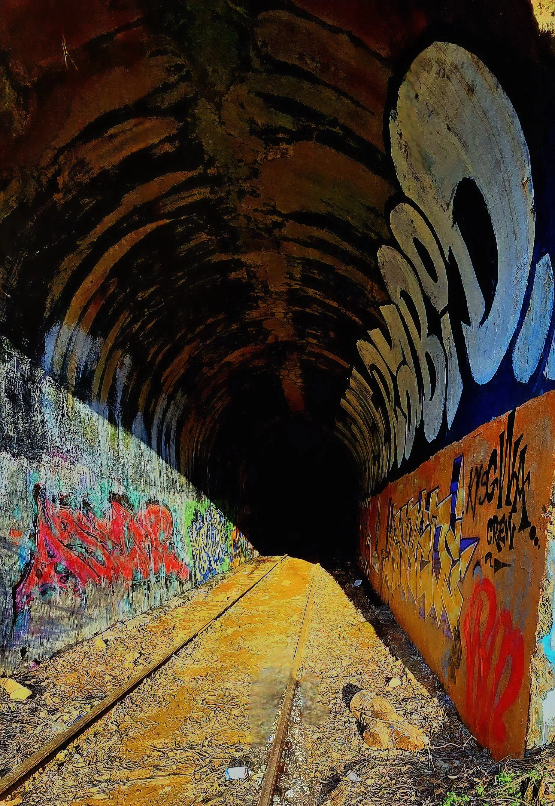 This railroad tunnel is currently used by graffiti artists.