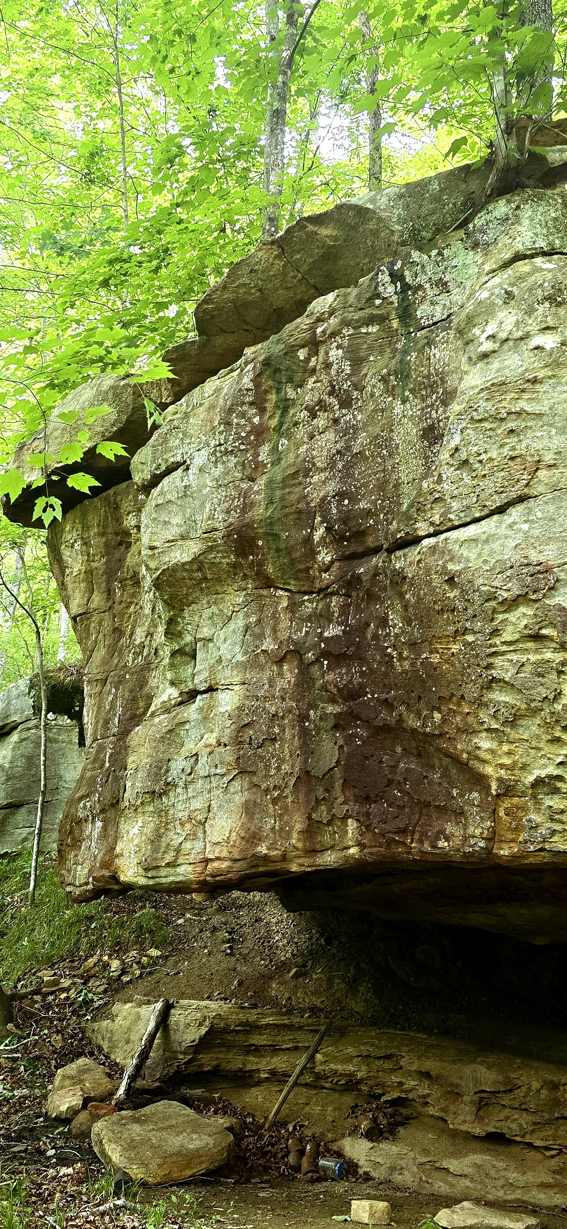 Evidence at bottom in this Sheltowee Trace image suggests someone used this rock overhang as a back county campsite.