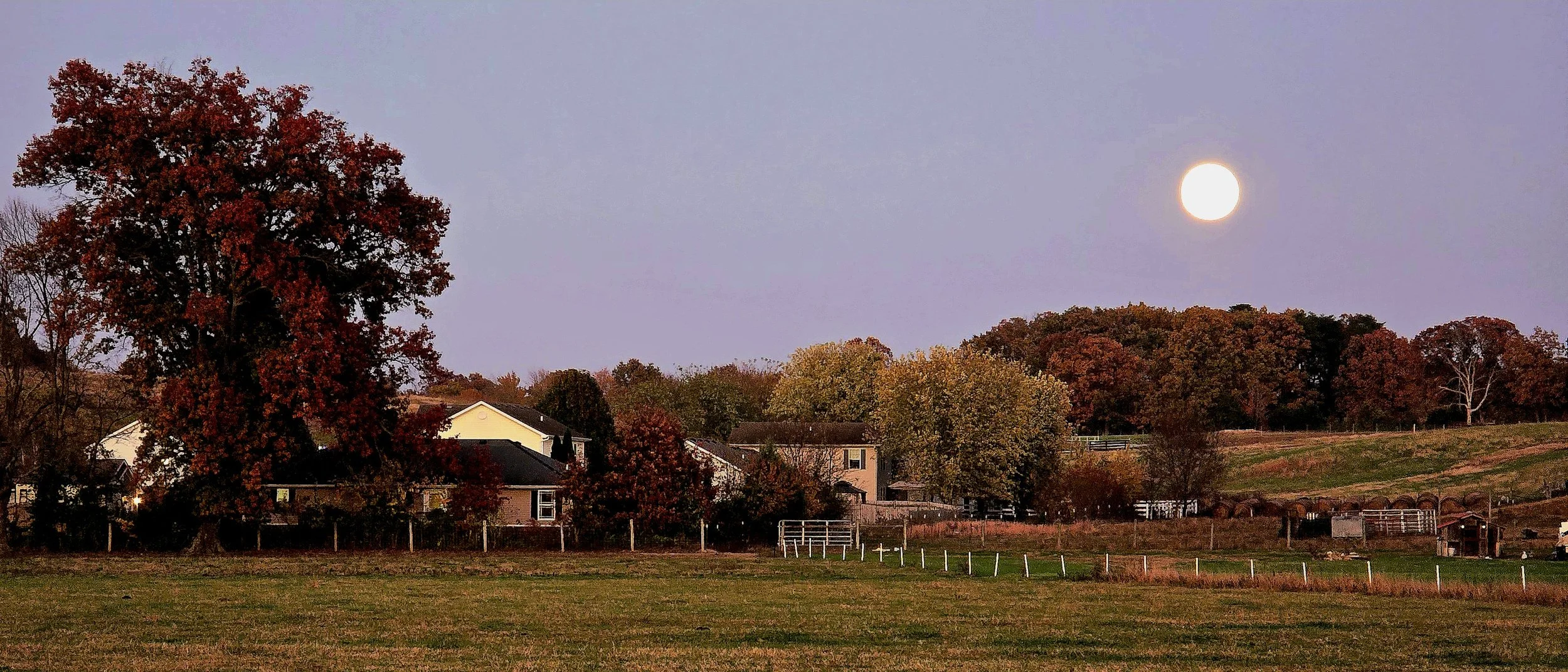 Another view of Beaver Moon as it rose above a nineteen-acre farm that surrounds my new Kentucky home, Windswept Acre.