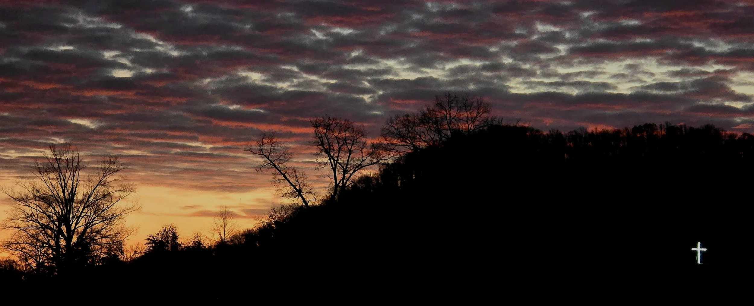 As I panned right to see more of the eastern sky that late-November morning, I noticed a neighbor had erected this lighted cross. It was surely a symbol of their faith.
