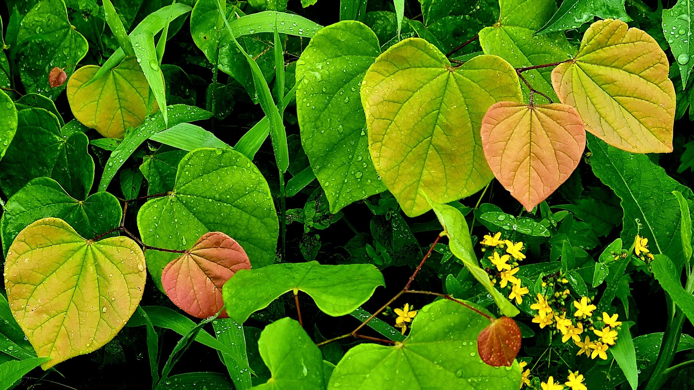 Thankfully, some Redbud trees display multicolored leaves even in early Summer.